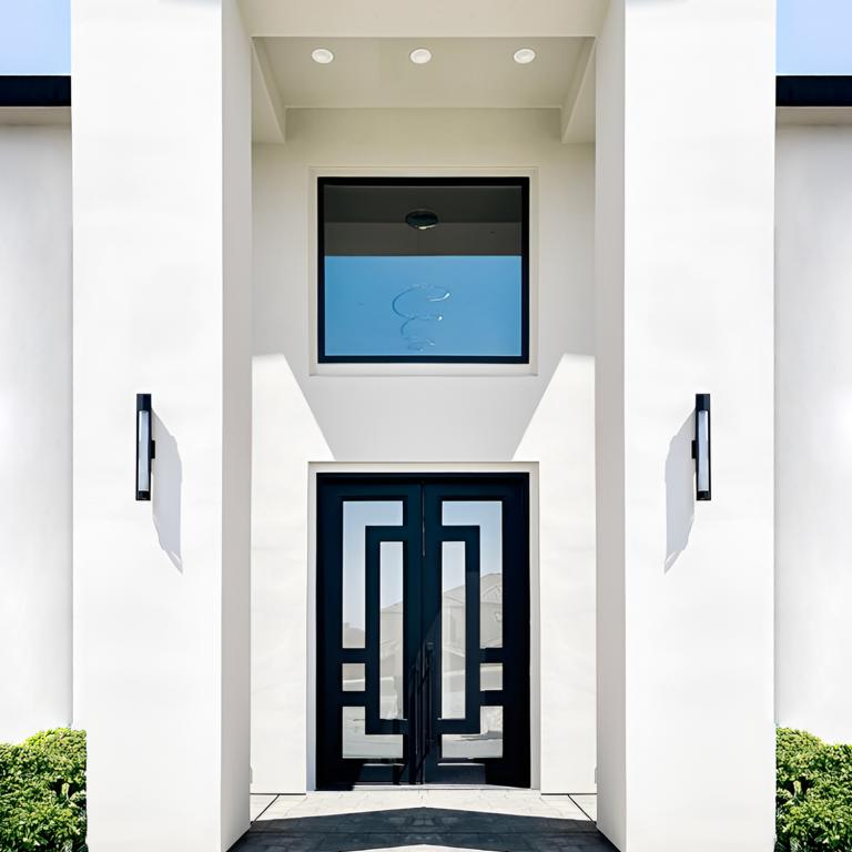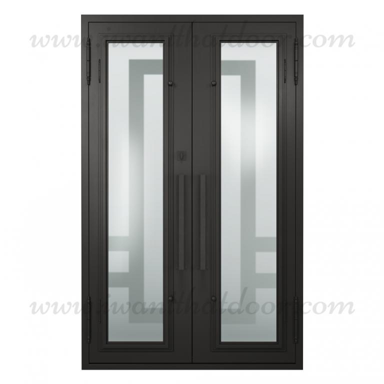 | OSLO 2 RH Wrought Iron Door 61 X 96 RIGHT HAND INSWING FLAT BLACK Color SANDBLAST Glass STEEL Material PULL HANDLE #006 SQUARE DEADBOLT DOUBLE SQUARE TOP Modern, Contemporary, Art Deco Style Residential, Commercial (Pull Handles and Locks are price separately) | |