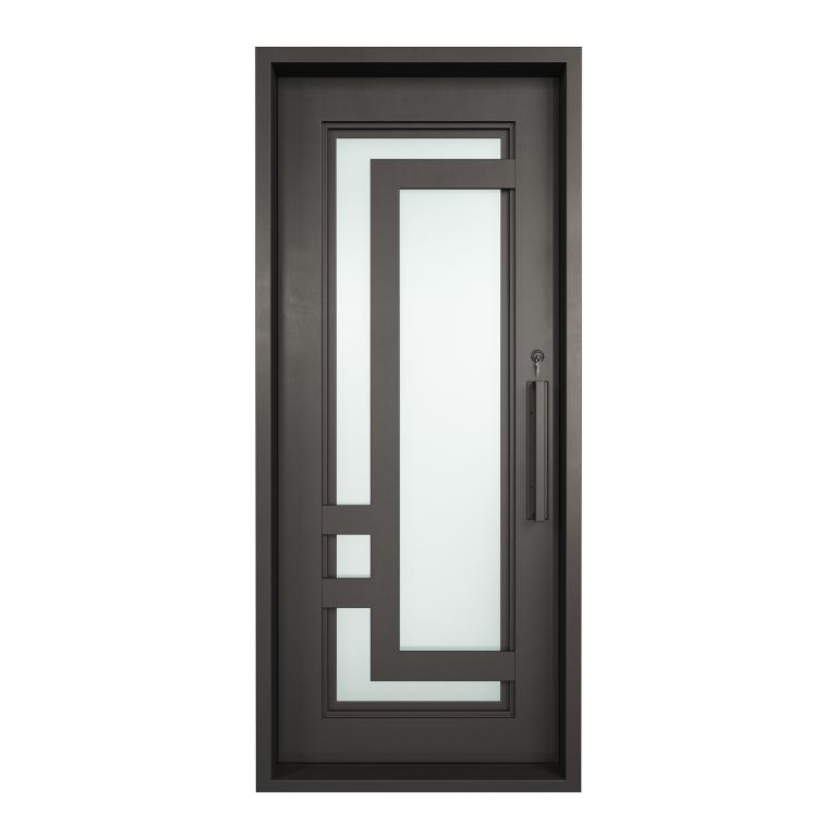 | OSLO LH Wrought Iron Door 42 X 96 LEFT HAND INSWING FLAT BLACK Color SANDBLAST Glass STEEL Material PULL HANDLE #006 SQUARE DEADBOLT SINGLE SQUARE TOP Modern, Contemporary, Art Deco Style solid, Residential, Commercial (Pull Handles and Locks are price separately) | |