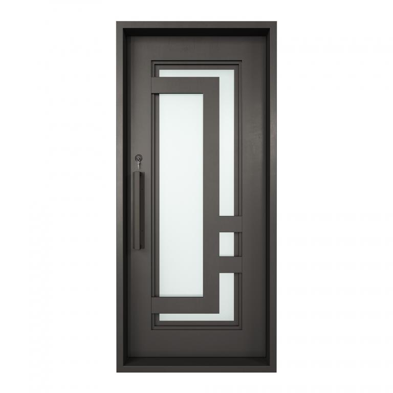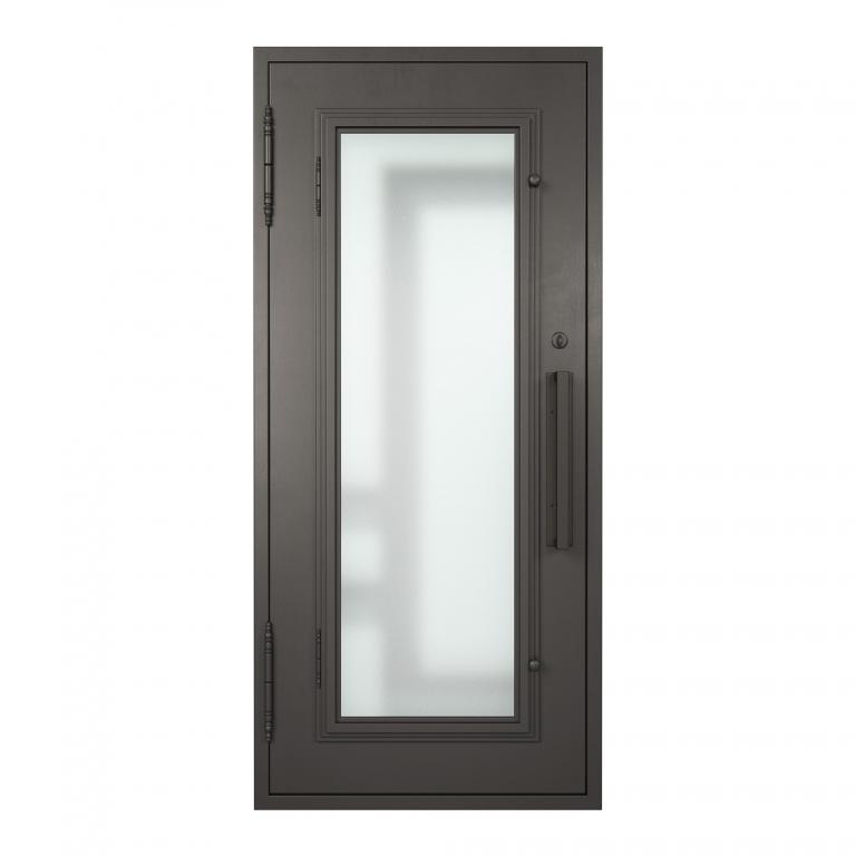 | OSLO RH Wrought Iron Door 37 X 81 RIGHT HAND INSWING FLAT BLACK Color SANDBLAST Glass STEEL Material PULL HANDLE #006 SQUARE DEADBOLT SINGLE SQUARE TOP Modern, Contemporary, Art Deco Style solid, Residential, Commercial (Pull Handles and Locks are price separately) | |