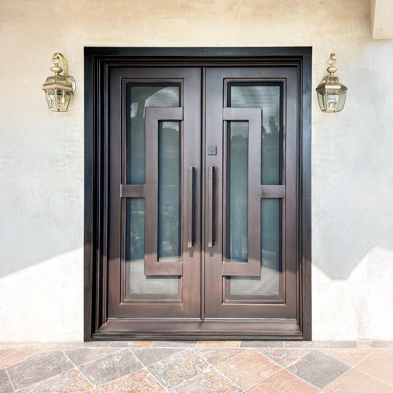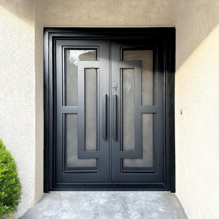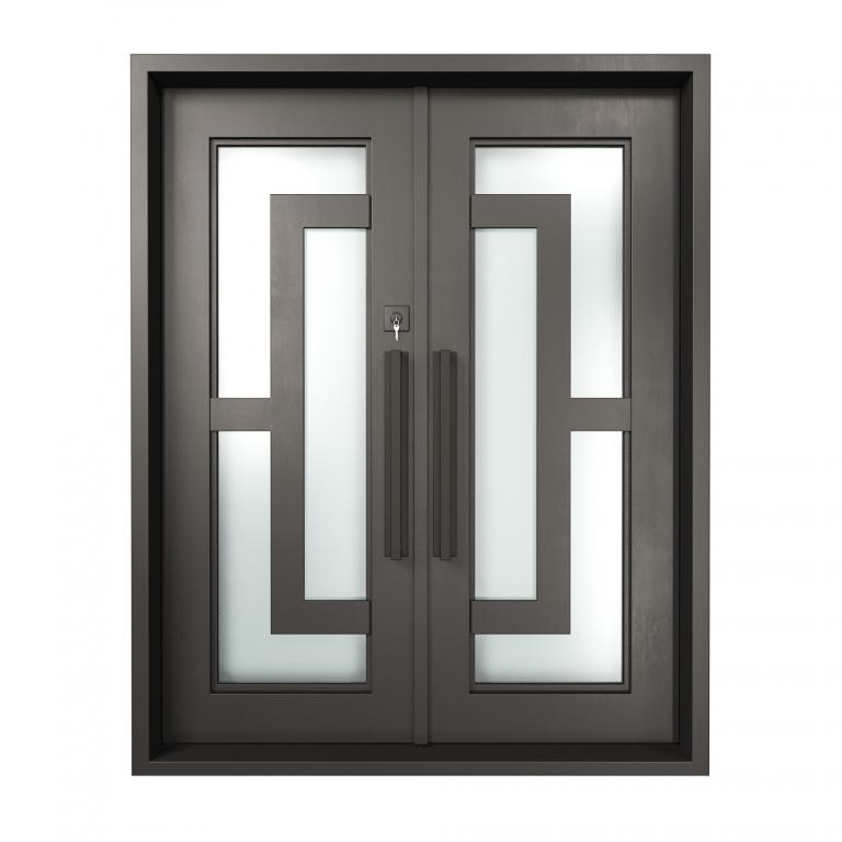 | OSLO LH Wrought Iron Door 65 X 81 LEFT HAND INSWING FLAT BLACK Color SANDBLAST Glass STEEL Material PULL HANDLE #006 SQUARE DEADBOLT DOUBLE SQUARE TOP Modern, Contemporary, Art Deco Style Residential, Commercial (Pull Handles and Locks are price separately) | |