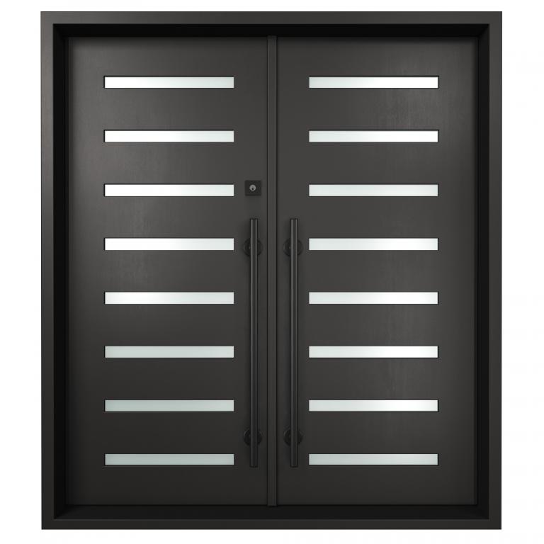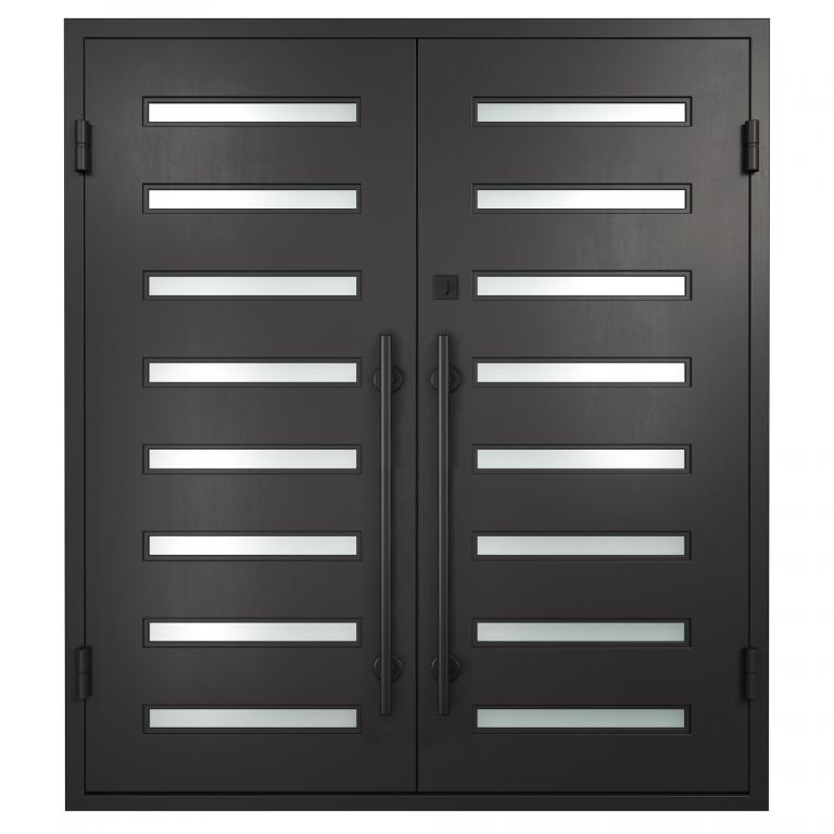 | THE BEAST 2 LH WROUGHT IRON Style 72 X 81 LEFT HAND INSWING FLAT BLACK Color SANDBLAST Glass STEEL Material PULL HANDLE #038 VITO - D107 - BL - S - DOUBLE SQUARE TOP Modern, Contemporary, Art Deco Style Residential, Commercial (Pull Handles and Locks are price separately) | |