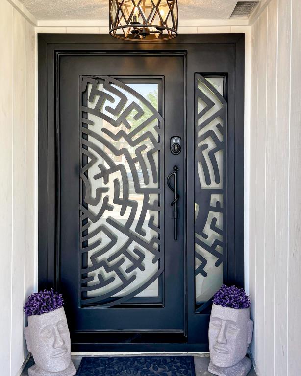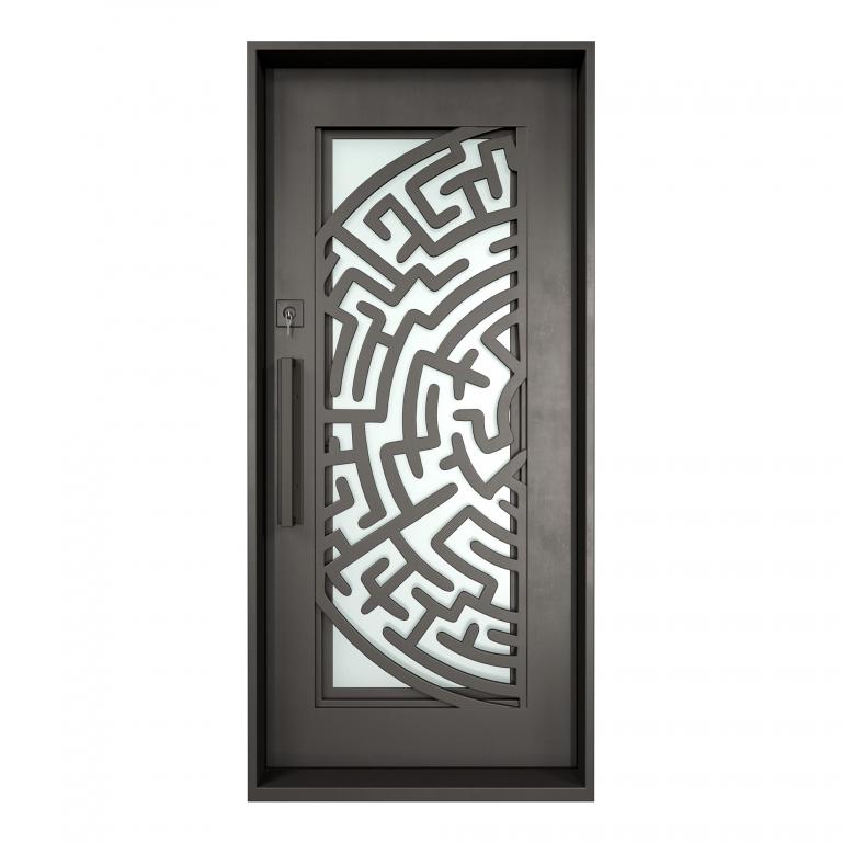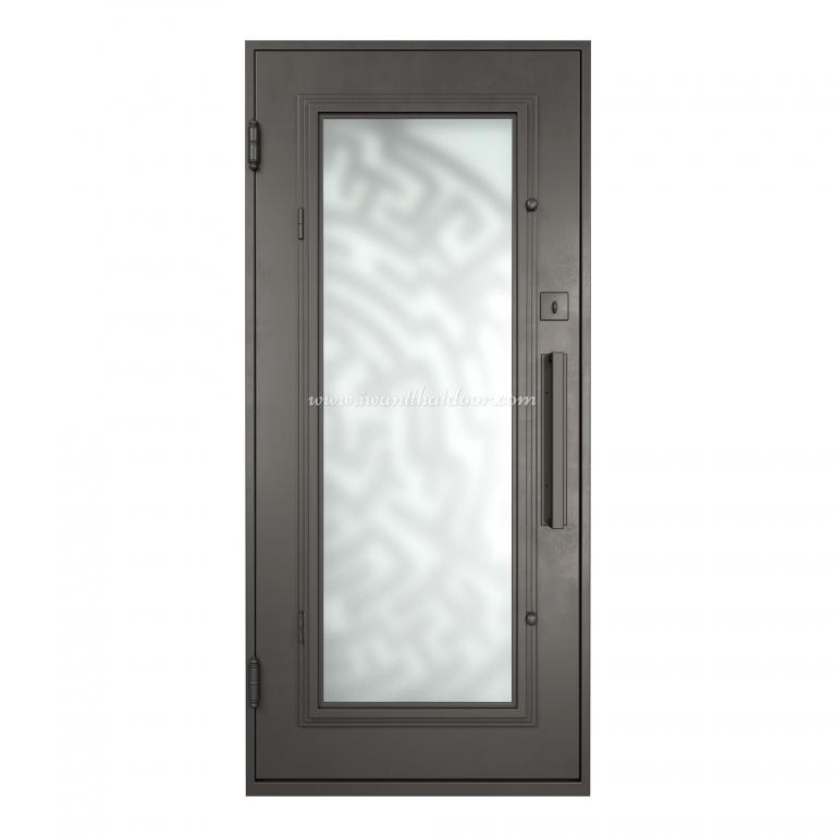 | MEDUSA RH Wrought Iron Door 37 X 81 RIGHT HAND INSWING FLAT BLACK Color SANDBLAST Glass STEEL Material PULL HANDLE #006 SQUARE DEADBOLT SINGLE SQUARE TOP Modern, Contemporary, Art Deco Style solid, Residential, Commercial (Pull Handles and Locks are price separately) | |