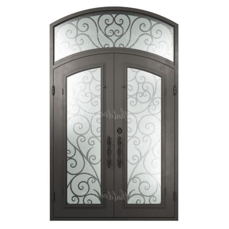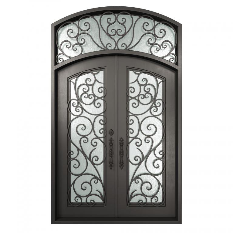 | TUSCANY WITH ATTACHED TRANSOM LH WROUGHT IRON Style 72 X 120 LEFT HAND INSWING MEDIUM COPPER Color RAIN Glass STEEL Material PULL HANDLE #019 SQUARE DEADBOLT DOUBLE EYEBROW TOP Mediterranean, Spanish, Italianate Style wTransom, Residential, Commercial (Pull Handles and Locks are price separately) | |