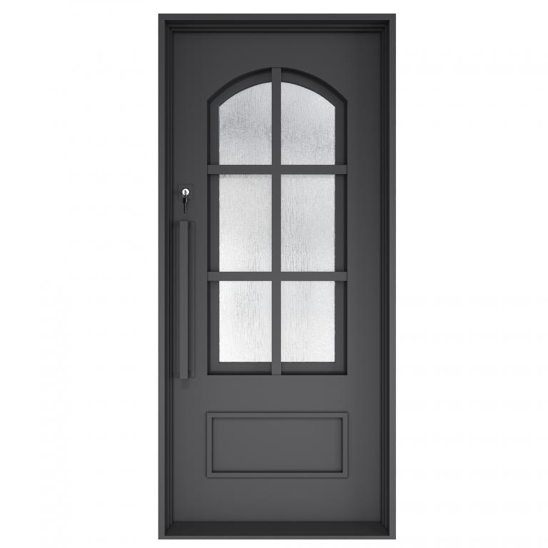 | ESSEX WITH THE EYEBROW WINDOW RH WROUGHT IRON Style 37 X 81 RIGHT HAND INSWING FLAT BLACK Color RAIN Glass STEEL Material PULL HANDLE #006 SQUARE DEADBOLT 8469 - SINGLE CYLINDER (FLAT BLACK (US19)) SINGLE SQUARE TOP Modern, Contemporary, Farmhouse, Craftsman, Cape Cod Style solid, Residential, Commercial (Pull Handles and Locks are price separately) | |