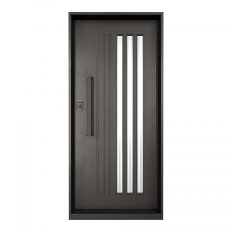 | DOLCE RH WROUGHT IRON Style 37 X 81 RIGHT HAND INSWING FLAT BLACK Color REEDED Glass STEEL Material PULL HANDLE #006 SQUARE DEADBOLT SINGLE SQUARE TOP Modern, Contemporary, Art Deco Style solid, Residential, Commercial (Pull Handles and Locks are price separately) | |