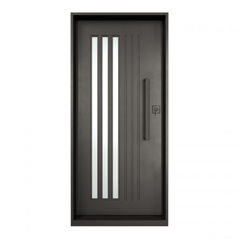 | DOLCE LH WROUGHT IRON Style 37 X 81 LEFT HAND INSWING FLAT BLACK Color REEDED Glass STEEL Material PULL HANDLE #006 SQUARE DEADBOLT SINGLE SQUARE TOP Modern, Contemporary, Art Deco Style solid, Residential, Commercial (Pull Handles and Locks are price separately) | |