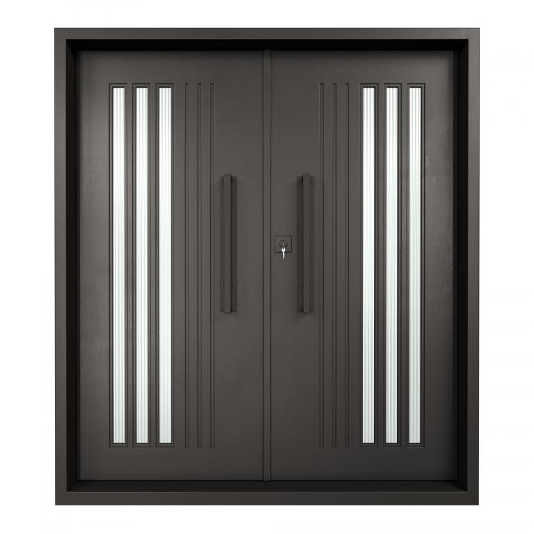 | DOLCE RH WROUGHT IRON Style 72 X 81 RIGHT HAND INSWING FLAT BLACK Color REEDED Glass STEEL Material PULL HANDLE #006 SQUARE DEADBOLT DOUBLE SQUARE TOP Modern, Contemporary, Art Deco Style Residential, Commercial (Pull Handles and Locks are price separately) | |