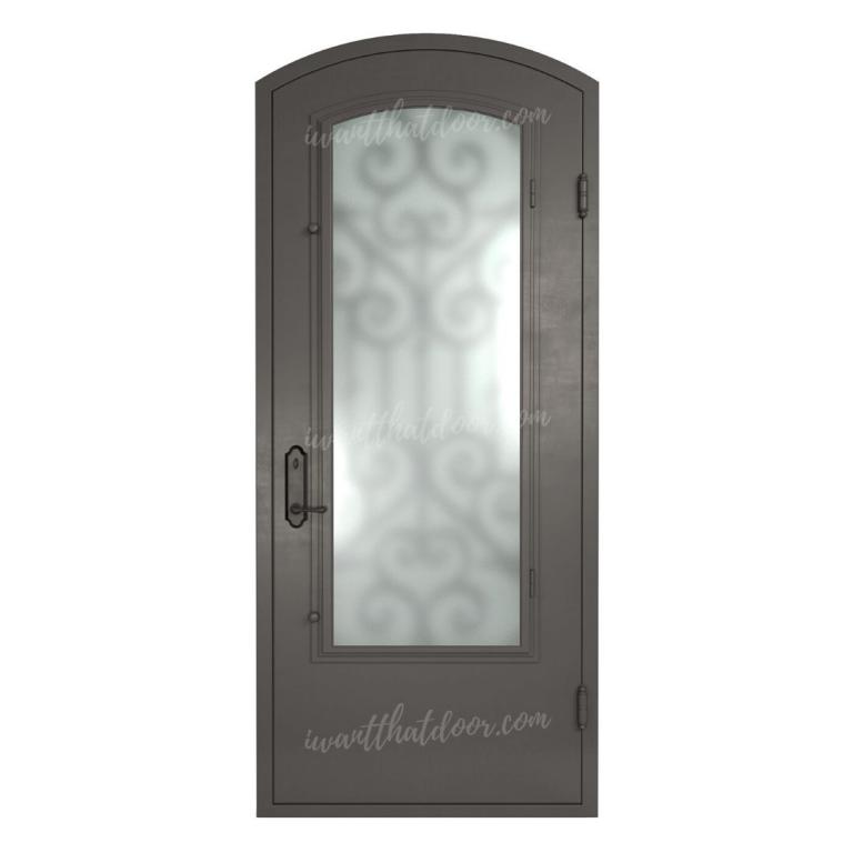| VATICAN LH #R WROUGHT IRON Style 42 X 96 LEFT HAND INSWING MEDIUM COPPER Color SANDBLAST Glass SINGLE EYEBROW TOP Mediterranean, Spanish, Italianate Style special, clearance, solid, Residential, Commercial | |
