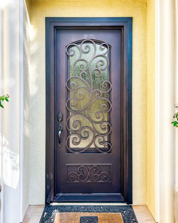 | TUSCANY SQUARE TOP WITH EYEBROW DOOR RH Wrought Iron Door 37 X 96 RIGHT HAND INSWING MEDIUM COPPER Color SANDBLAST Glass STEEL Material PULL HANDLE #005 SQUARE DEADBOLT SINGLE SQUARE TOP Mediterranean, Spanish Style solid, Residential, Commercial (Pull Handles and Locks are price separately) | |