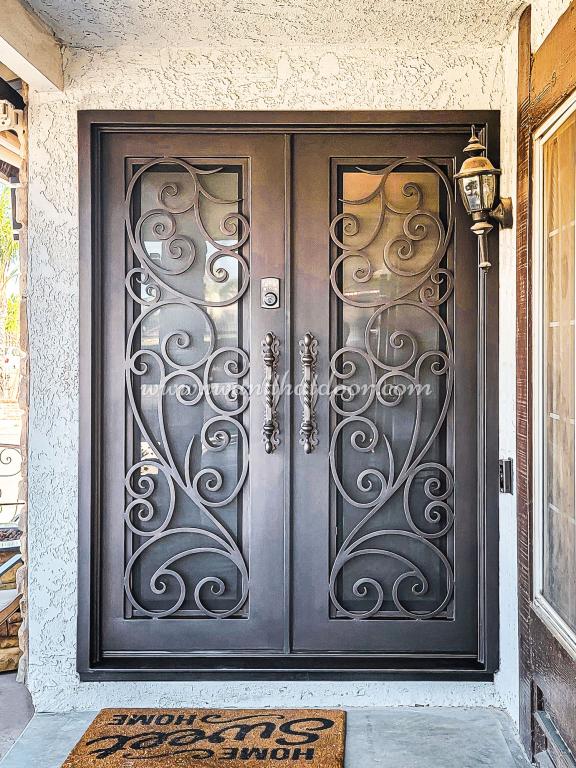 | TUSCANY LH Wrought Iron Door 61 X 96 LEFT HAND INSWING MEDIUM COPPER Color SANDBLAST Glass STEEL Material PULL HANDLE #019 SQUARE DEADBOLT DOUBLE SQUARE TOP Mediterranean, Spanish, Italianate Style Residential, Commercial (Pull Handles and Locks are price separately) | |