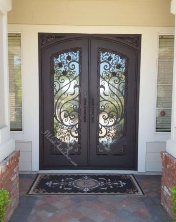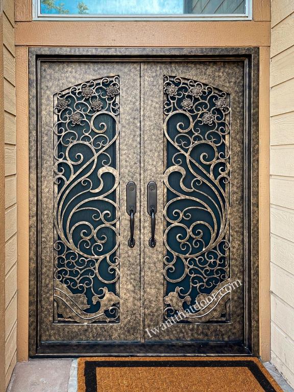 | APOLLO LH Wrought Iron Door 72 X 96 LEFT HAND INSWING MEDIUM COPPER Color RAIN Glass STEEL Material PULL HANDLE #020 DOUBLE SQUARE TOP Mediterranean, Spanish, Italianate Style Residential, Commercial (Pull Handles and Locks are price separately) | |