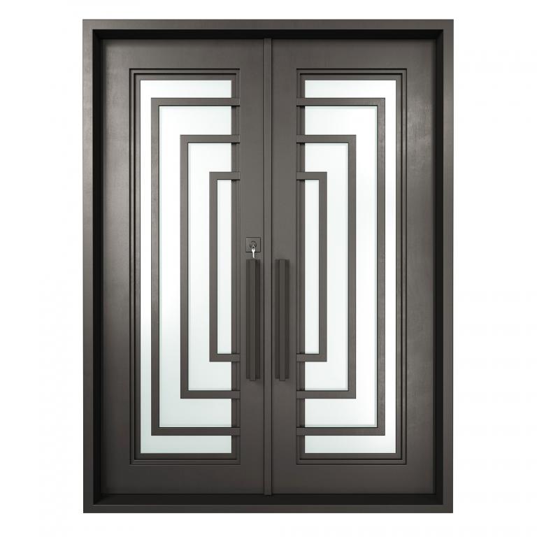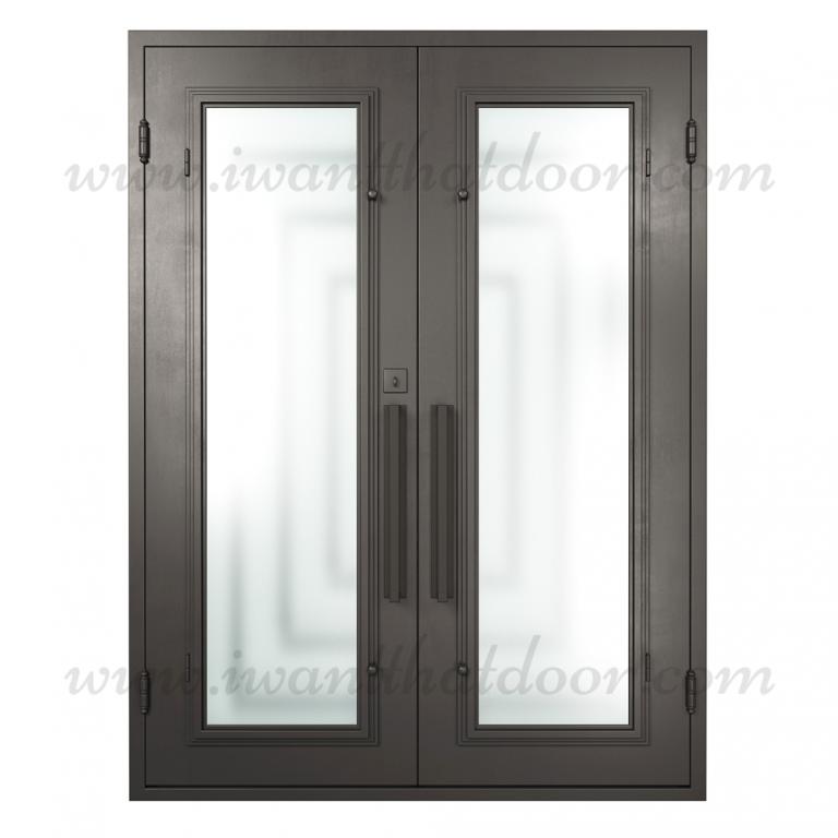 | REFLECTION LH Wrought Iron Door 72 X 120 LEFT HAND INSWING FLAT BLACK Color SANDBLAST Glass STEEL Material PULL HANDLE #006 SQUARE DEADBOLT DOUBLE SQUARE TOP Modern, Contemporary, Art Deco Style Residential, Commercial (Pull Handles and Locks are price separately) | |