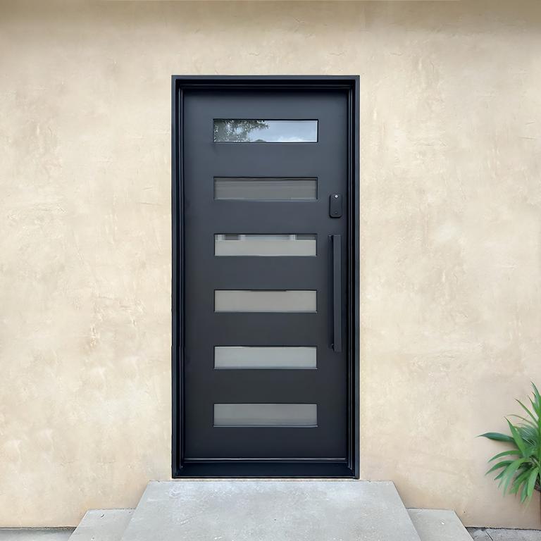 | THE BEAST LH WROUGHT IRON Style 42 X 96 LEFT HAND INSWING FLAT BLACK Color SANDBLAST Glass STEEL Material PULL HANDLE #006 SQUARE DEADBOLT SINGLE SQUARE TOP Modern, Contemporary, Art Deco Style solid, Residential, Commercial (Pull Handles and Locks are price separately) | |