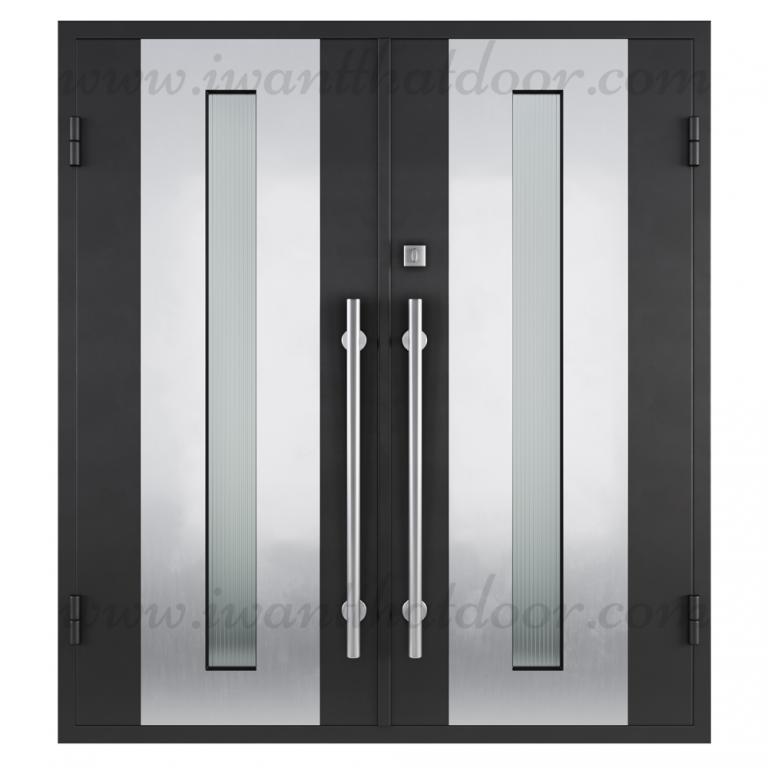 | ARTSAKH LH Wrought Iron Door 72 X 81 LEFT HAND INSWING FLAT BLACK Color REEDED Glass STEEL Material PULL HANDLE #037 SQUARE DEADBOLT 8469 - SINGLE CYLINDER (SATIN NICKEL (US15)) DOUBLE SQUARE TOP Modern, Contemporary, Art Deco Style Residential, Commercial (Pull Handles and Locks are price separately) | |
