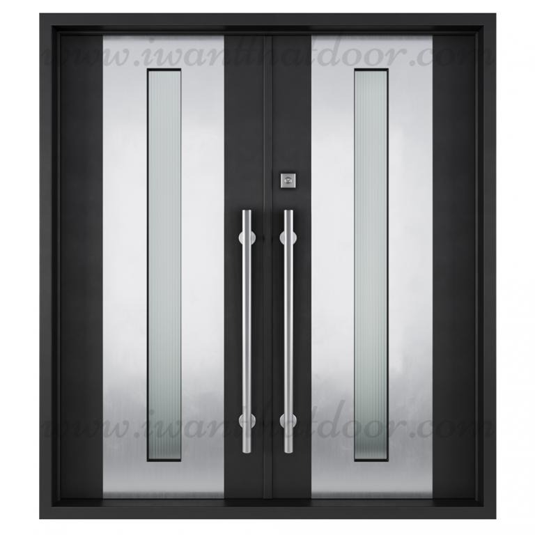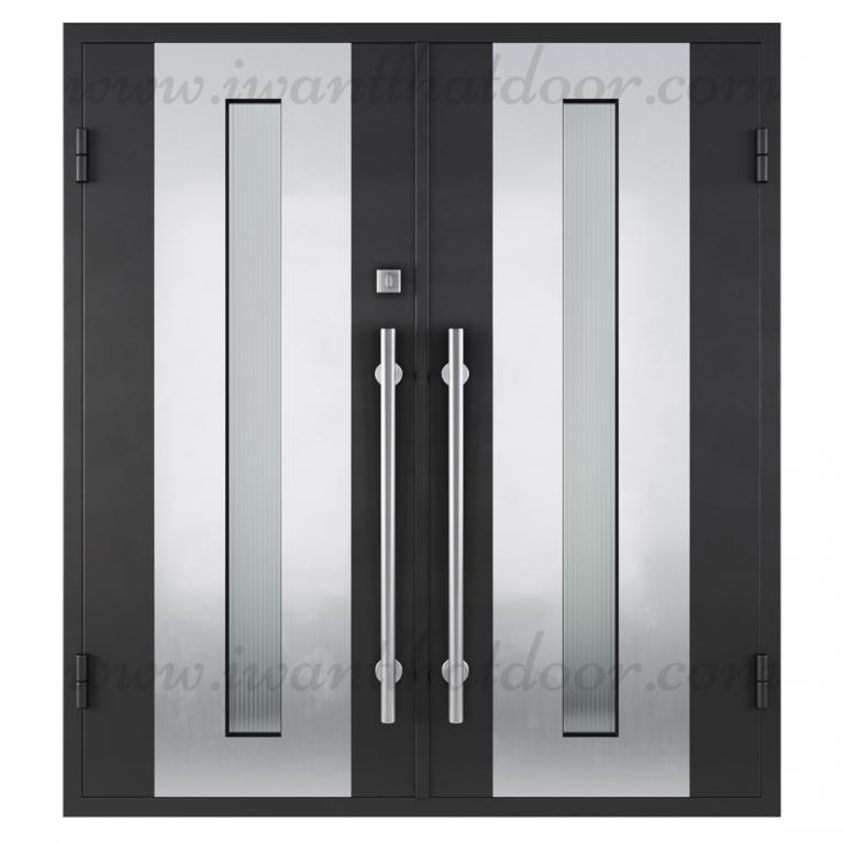 | ARTSAKH RH Wrought Iron Door 72 X 81 RIGHT HAND INSWING FLAT BLACK Color REEDED Glass STEEL Material PULL HANDLE #037 DOUBLE SQUARE TOP Modern, Contemporary, Art Deco Style Residential, Commercial (Pull Handles and Locks are price separately) | |