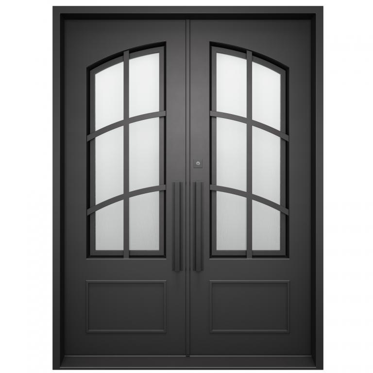 | ESSEX CURVED RH WROUGHT IRON Style 72 X 96 RIGHT HAND INSWING FLAT BLACK Color RAIN Glass STEEL Material PULL HANDLE #006 SQUARE DEADBOLT 8469 - SINGLE CYLINDER (FLAT BLACK (US19)) DOUBLE SQUARE TOP Modern, Contemporary, Farmhouse, Craftsman, Cape Cod Style Residential, Commercial (Pull Handles and Locks are price separately) | |