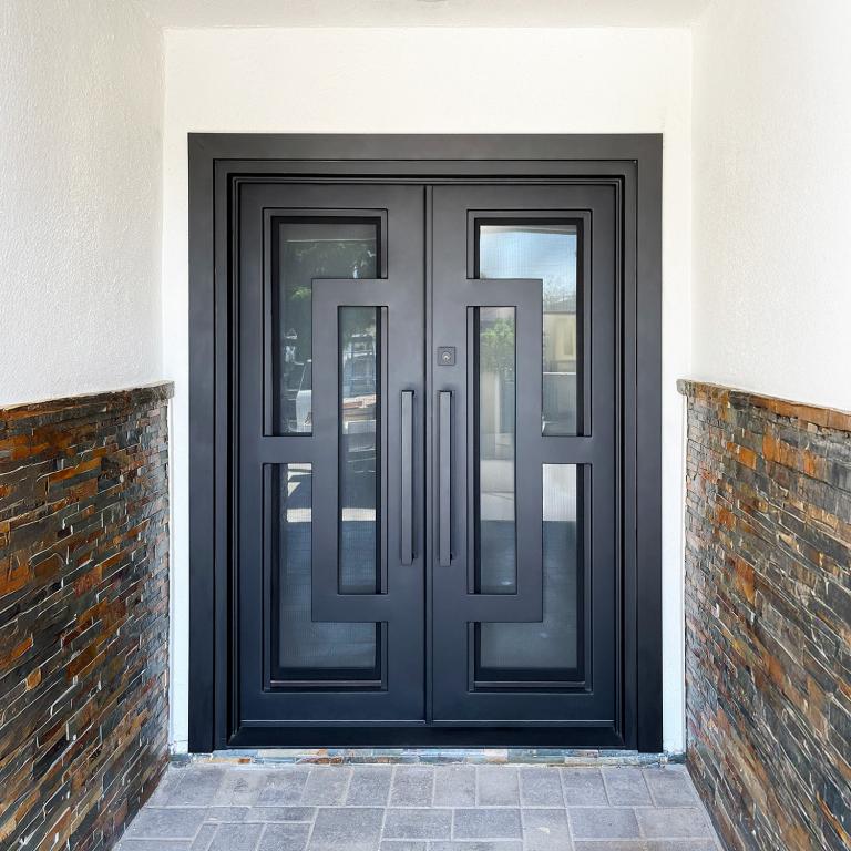 | OSLO THERMAL BREAK LH Wrought Iron Door 72 X 81 LEFT HAND INSWING FLAT BLACK Color SANDBLAST Glass STEEL Material PULL HANDLE #006 SQUARE DEADBOLT 8469 - SINGLE CYLINDER (FLAT BLACK (US19)) DOUBLE SQUARE TOP Modern, Contemporary Style thermalBreak, Residential, Commercial (Pull Handles and Locks are price separately) | |
