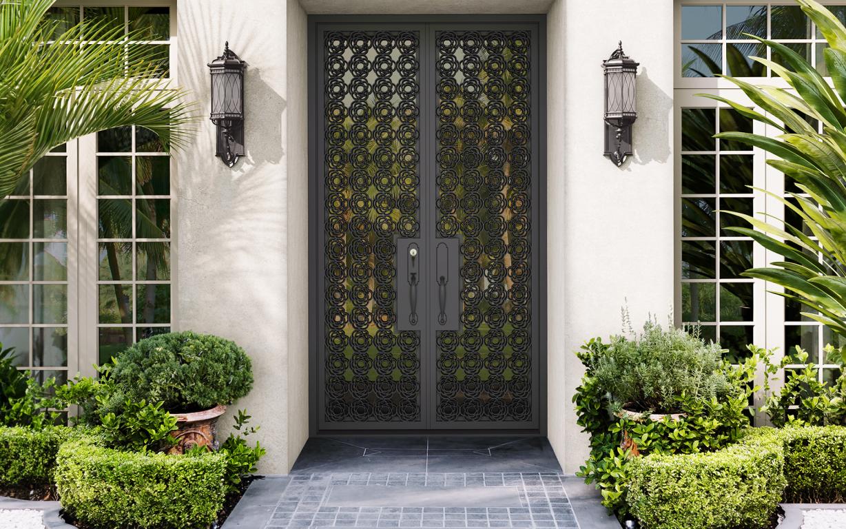 | ROSALIA LH WROUGHT IRON Style 61 X 108 LEFT HAND INSWING FLAT BLACK Color SILVER REFLECTIVE Glass STEEL Material RICHMOND 4313 - SINGLE CYLINDER (FLAT BLACK (US19)) DOUBLE SQUARE TOP Art Deco, Mediterranean, Spanish, Italianate, Religious Style solid, Residential, Commercial (Pull Handles and Locks are price separately) | |
