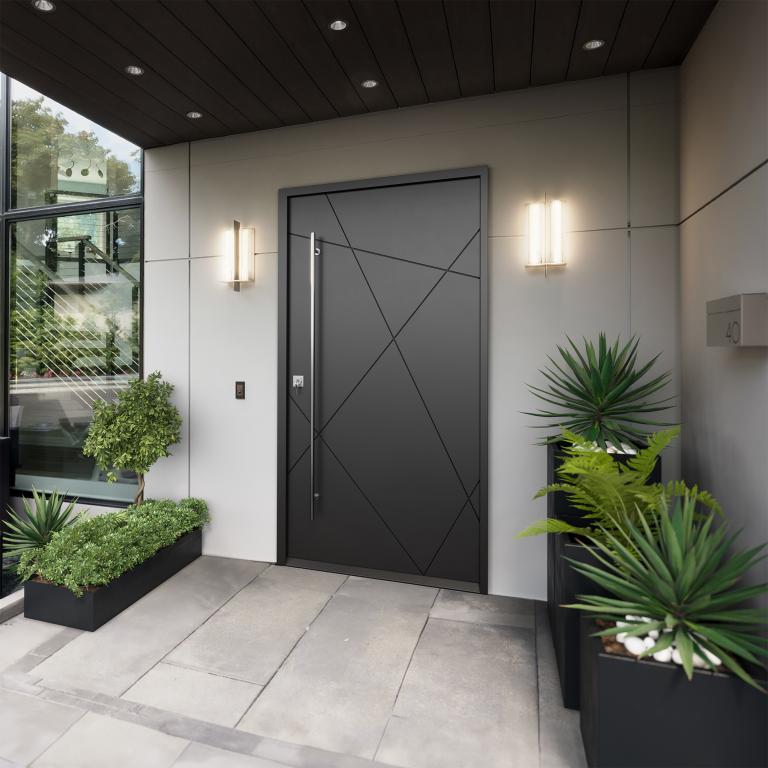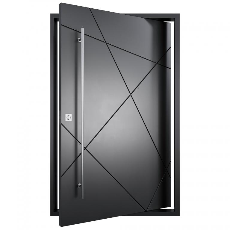 | MATRIX PIVOT LH PIVOT Style 61 X 96 LEFT HAND INSWING FLAT BLACK Color STEEL Material PULL HANDLE #059 BRUSHED ALUMINUM ROUND 70" SQUARE DEADBOLT 8469 - SINGLE CYLINDER (SATIN NICKEL (US15)) SINGLE SQUARE TOP Modern, Contemporary Style solid, Residential, Commercial (Pull Handles and Locks are price separately) | |