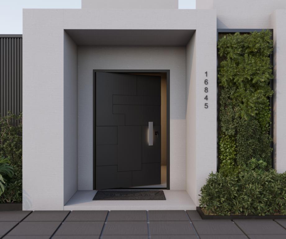 | LABYRINTH PIVOT RH PIVOT Style 61 X 96 RIGHT HAND INSWING FLAT BLACK Color STEEL Material PULL HANDLE #068 SQUARE DEADBOLT 8469 - SINGLE CYLINDER (FLAT BLACK (US19)) SINGLE SQUARE TOP Modern, Contemporary Style solid, Residential, Commercial (Pull Handles and Locks are price separately) | |