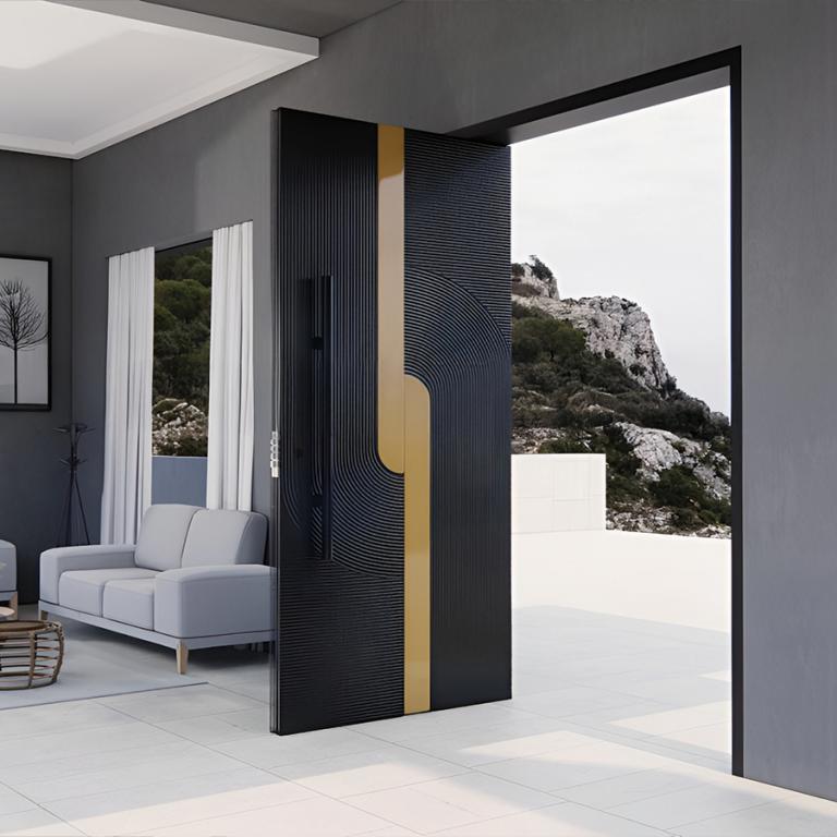 | UCCI PIVOT LH PIVOT Style 61 X 96 LEFT HAND INSWING FLAT BLACK Color ALUMINUM Material PULL HANDLE #058 GOLD STAINLESS STEEL ROUND 70" VITO - D107 - BL - S - SINGLE SQUARE TOP Modern, Contemporary Style solid, Residential, Commercial (Pull Handles and Locks are price separately) | |