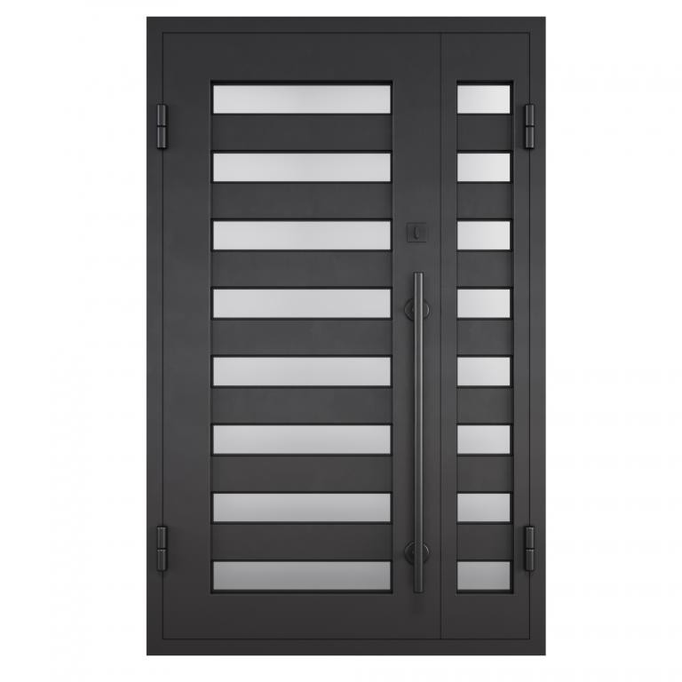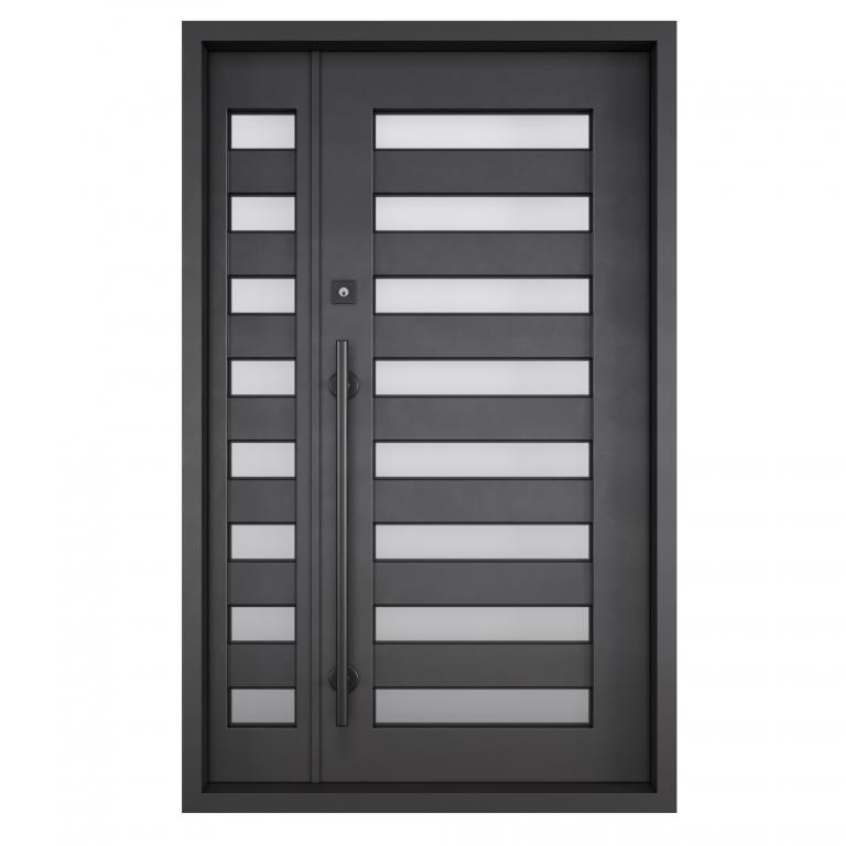 | THE BEAST 2 RH WROUGHT IRON Style 53 X 81 RIGHT HAND INSWING FLAT BLACK Color SANDBLAST Glass STEEL Material PULL HANDLE #038 SQUARE DEADBOLT 8469 - SINGLE CYLINDER (FLAT BLACK (US19)) SINGLE SQUARE TOP Modern, Contemporary Style wSidLights, Residential, Commercial (Pull Handles and Locks are price separately) | |