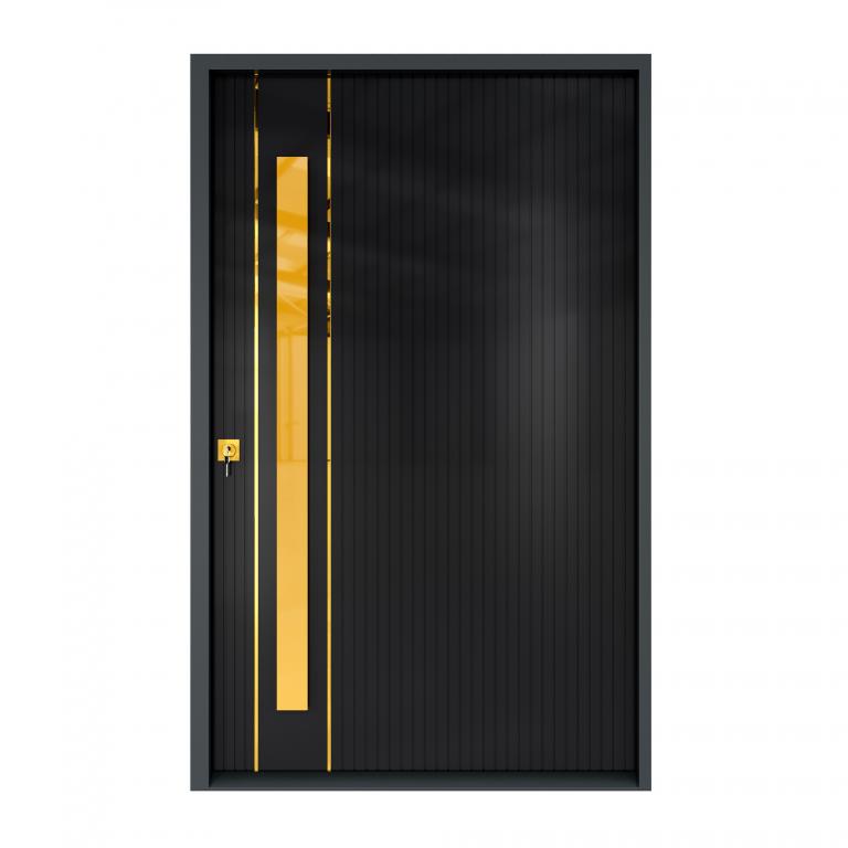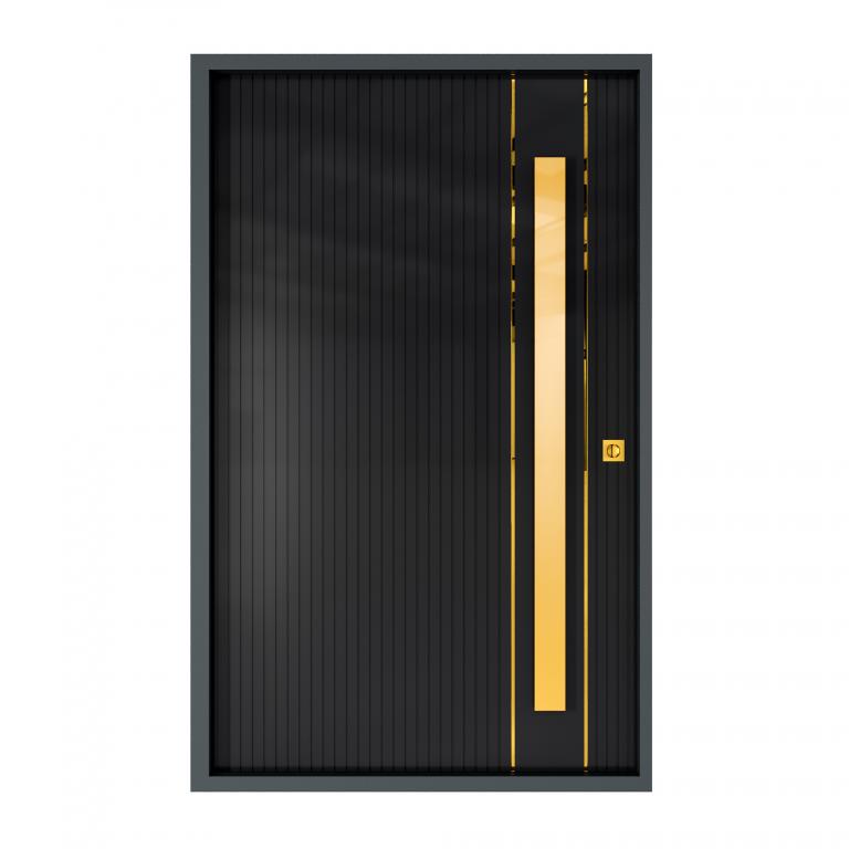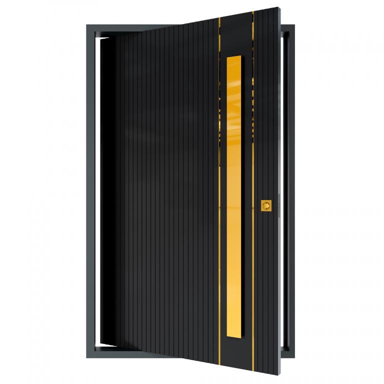 | VERMONT PIVOT RH Metal Pivot Door 61 X 96 RIGHT HAND INSWING FLAT BLACK Color ALUMINUM Material PULL HANDLE #066 BRUSHED GOLD SQUARE SQUARE DEADBOLT 8469 - SINGLE CYLINDER (SATIN BRASS (US4)) SINGLE SQUARE TOP Modern, Contemporary Style solid, Residential, Commercial (Pull Handles and Locks are price separately) | |