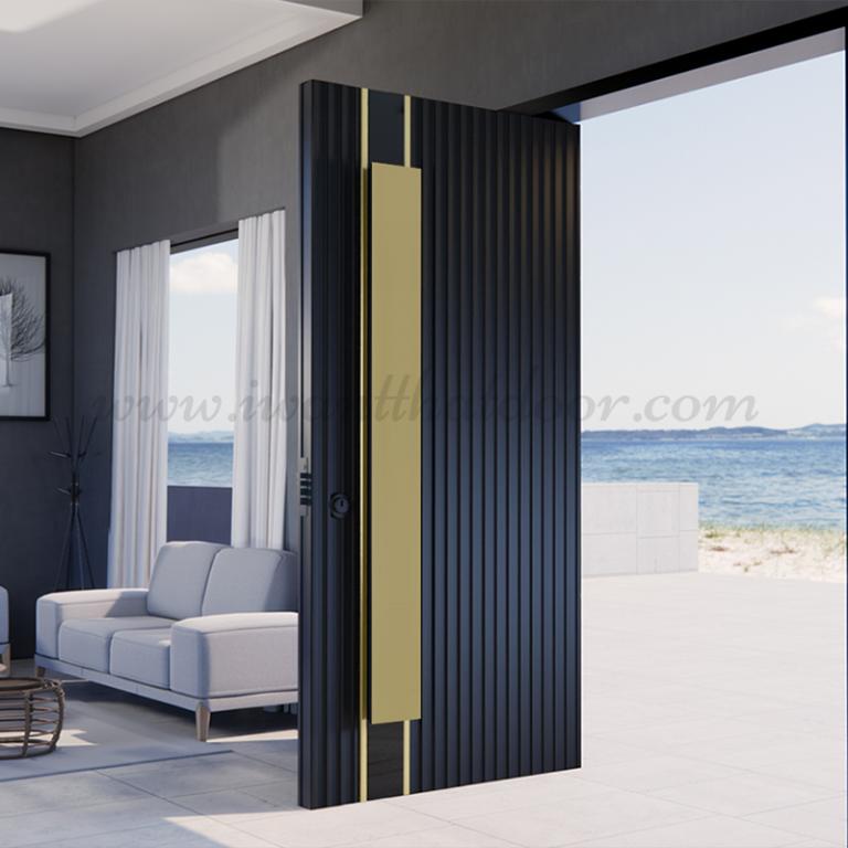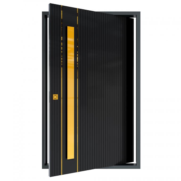 | VERMONT PIVOT LH Metal Pivot Door 61 X 96 LEFT HAND INSWING FLAT BLACK Color ALUMINUM Material PULL HANDLE #066 BRUSHED GOLD SQUARE SQUARE DEADBOLT 8469 - SINGLE CYLINDER (SATIN BRASS (US4)) SINGLE SQUARE TOP Modern, Contemporary Style solid, Residential, Commercial (Pull Handles and Locks are price separately) | |