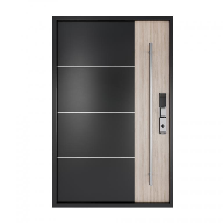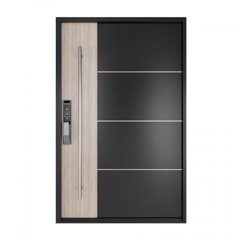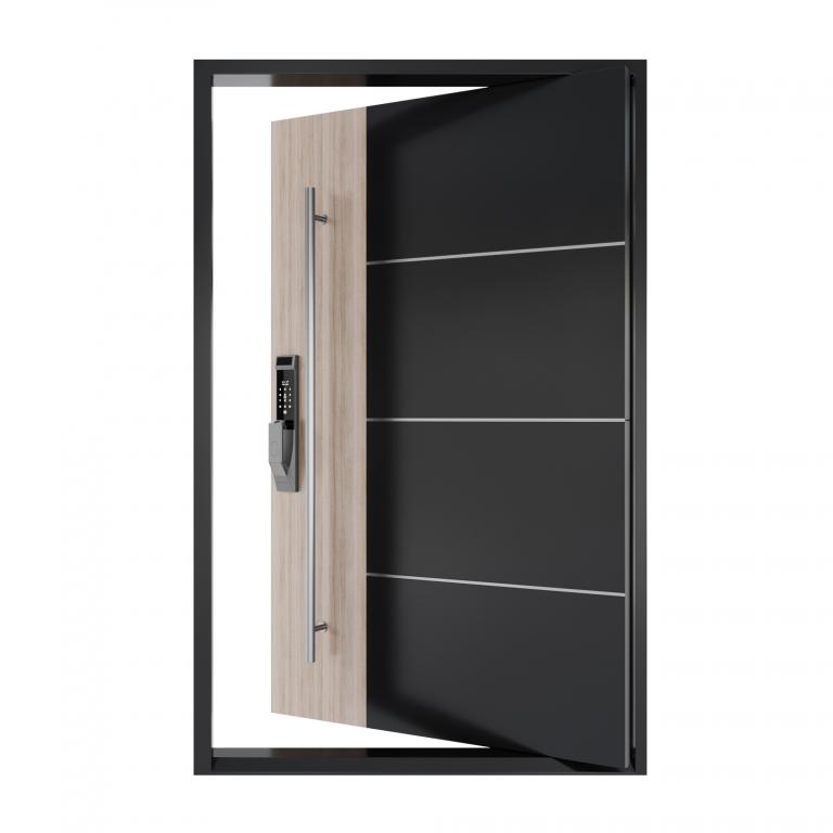 | BRONCO WOOD PIVOT RH Metal Pivot Door 61 X 96 RIGHT HAND INSWING STEEL Material PULL HANDLE #059 BRUSHED ALUMINUM ROUND 70" DIGITAL LOCK WITH CAMERA 2 SINGLE SQUARE TOP Modern, Contemporary Style solid, Residential, Commercial (Pull Handles and Locks are price separately) | |