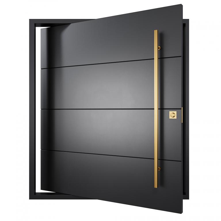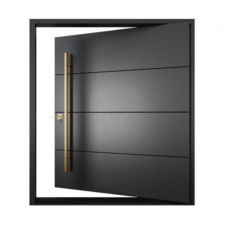 | ALICANTE PIVOT RH PIVOT Style 72 X 81 RIGHT HAND INSWING FLAT BLACK Color STEEL Material PULL HANDLE #055 BRUSHED GOLD SQUARE 59" SQUARE DEADBOLT 8469 - SINGLE CYLINDER (SATIN BRASS (US4)) SINGLE SQUARE TOP Modern, Contemporary Style solid, Residential, Commercial (Pull Handles and Locks are price separately) | |