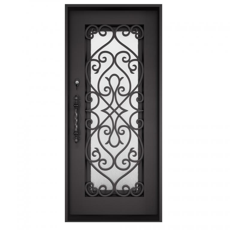 | FLORENCE RH WROUGHT IRON Style 37 X 81 RIGHT HAND INSWING DARK COPPER Color RAIN Glass STEEL Material PULL HANDLE #019 SIROCCO - D109 - ORB - SINGLE CYLINDER SINGLE SQUARE TOP Mediterranean, Spanish, Italianate Style solid, Residential (Pull Handles and Locks are price separately) | |