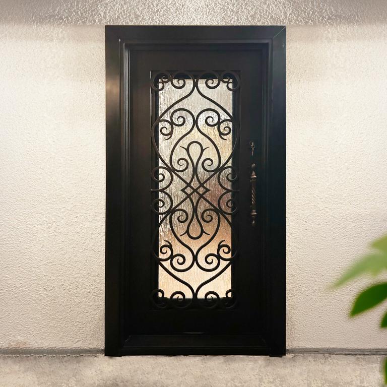 | FLORENCE RH WROUGHT IRON Style 42 X 81 RIGHT HAND INSWING DARK COPPER Color RAIN Glass STEEL Material PULL HANDLE #019 SIROCCO - D109 - ORB - SINGLE CYLINDER SINGLE SQUARE TOP Mediterranean, Spanish, Italianate Style solid, Residential, Commercial (Pull Handles and Locks are price separately) | |