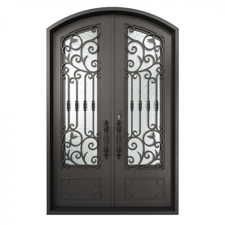 | RENAISSANCE LH WROUGHT IRON Style 61 X 96 LEFT HAND INSWING DARK COPPER Color RAIN Glass STEEL Material PULL HANDLE #019 SIROCCO - D109 - ORB - SINGLE CYLINDER DOUBLE SQUARE TOP Mediterranean, Spanish, Italianate, Religious Style Residential, Commercial (Pull Handles and Locks are price separately) | |