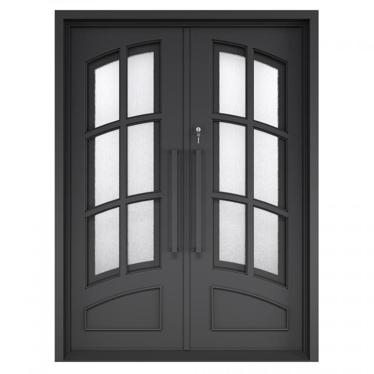 | ESSEX CURVED THERMAL BREAK RH Wrought Iron Door 61 X 81 RIGHT HAND INSWING FLAT BLACK Color RAIN Glass STEEL Material PULL HANDLE #006 SQUARE DEADBOLT 8469 - SINGLE CYLINDER (FLAT BLACK (US19)) DOUBLE EYEBROW TOP Modern, Contemporary, Farmhouse, Craftsman, Cape Cod Style thermalBreak, Residential, Commercial (Pull Handles and Locks are price separately) | |