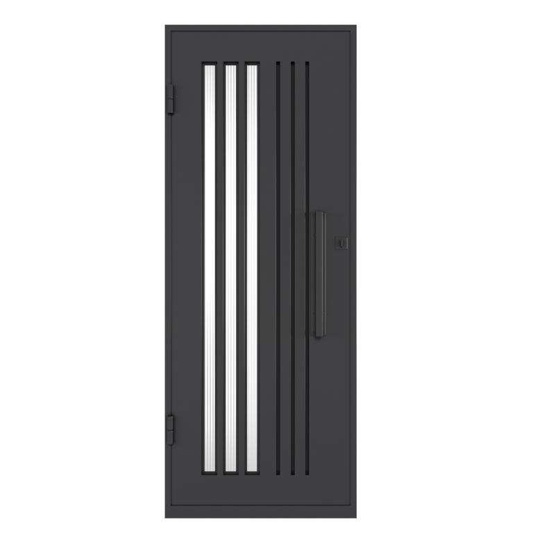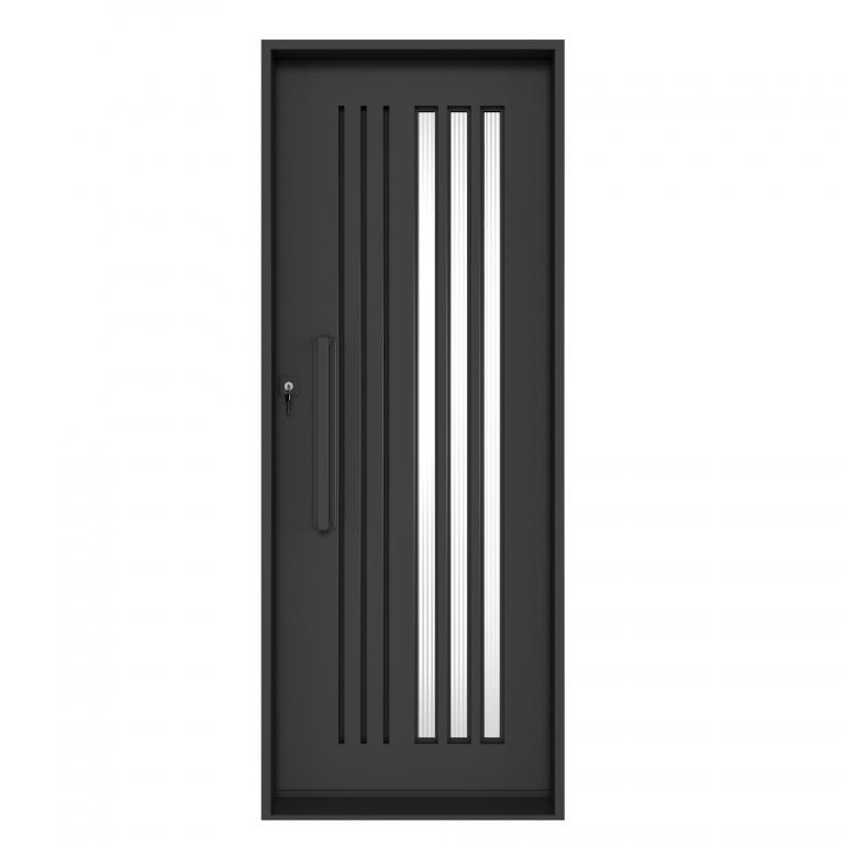 DOLCE THERMAL BREAK RH WROUGHT IRON Style 37 X 96 RIGHT HAND INSWING FLAT BLACK Color REEDED Glass STEEL Material PULL HANDLE #006 SQUARE DEADBOLT 8469 - SINGLE CYLINDER (FLAT BLACK (US19)) SINGLE SQUARE TOP Modern, Contemporary Style Thermal Break, solid, Residential, Commercial (Pull Handles and Locks are price separately)