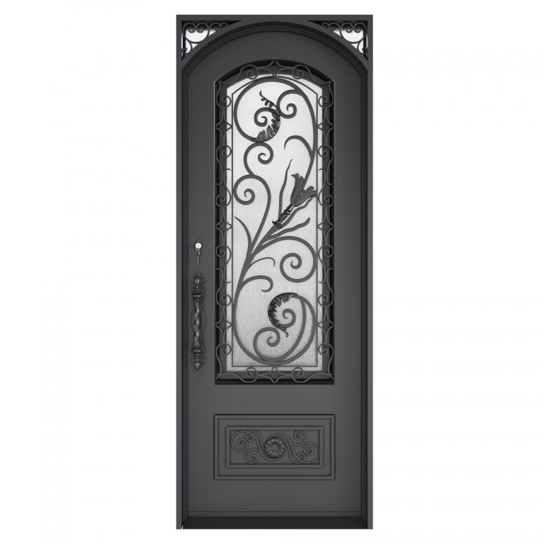 | RENAISSANCE RH WROUGHT IRON Style 37 X 96 RIGHT HAND INSWING DARK COPPER Color RAIN Glass STEEL Material PULL HANDLE #019 #8 DEADBOLT 8466 - SINGLE CYLINDER (OIL RUBBED BRONZE (US10B)) SINGLE SQUARE TOP Mediterranean, Spanish, Italianate Style (Pull Handles and Locks are price separately) | |