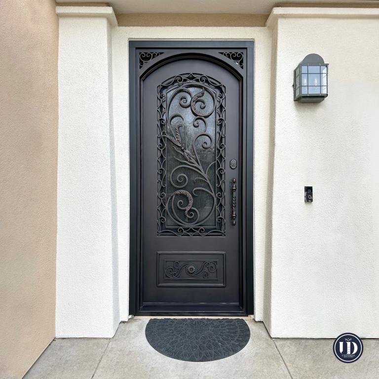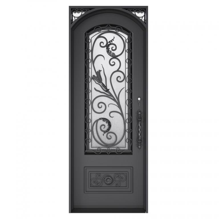 | RENAISSANCE LH WROUGHT IRON Style 37 X 96 LEFT HAND INSWING DARK COPPER Color RAIN Glass STEEL Material PULL HANDLE #019 #8 DEADBOLT 8466 - SINGLE CYLINDER (OIL RUBBED BRONZE (US10B)) SINGLE SQUARE TOP Mediterranean, Spanish, Italianate Style (Pull Handles and Locks are price separately) | |