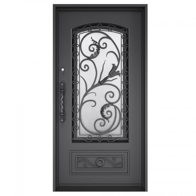 | RENAISSANCE RH WROUGHT IRON Style 42 X 81 RIGHT HAND INSWING DARK COPPER Color RAIN Glass STEEL Material PULL HANDLE #019 #8 DEADBOLT 8466 - SINGLE CYLINDER (OIL RUBBED BRONZE (US10B)) SINGLE SQUARE TOP Mediterranean, Spanish, Italianate Style (Pull Handles and Locks are price separately) | |