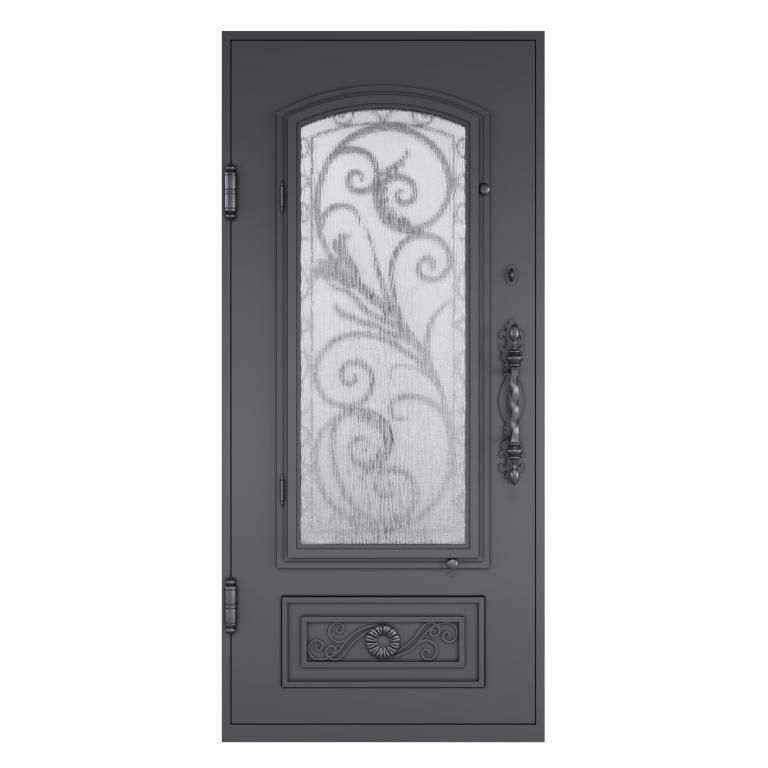 | RENAISSANCE RH WROUGHT IRON Style 37 X 81 RIGHT HAND INSWING DARK COPPER Color RAIN Glass STEEL Material PULL HANDLE #019 #8 DEADBOLT 8466 - SINGLE CYLINDER (OIL RUBBED BRONZE (US10B)) SINGLE SQUARE TOP Mediterranean, Spanish, Italianate Style (Pull Handles and Locks are price separately) | |