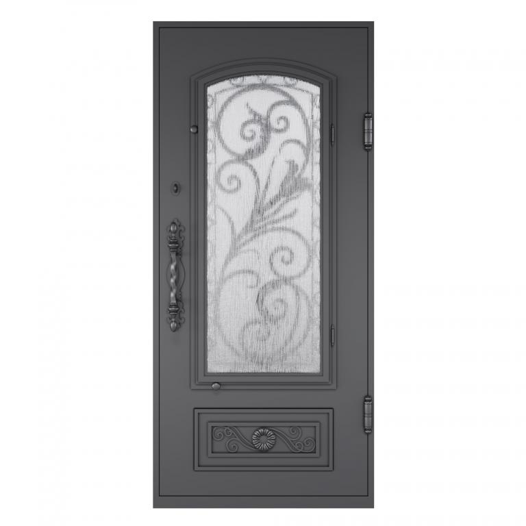 | RENAISSANCE LH WROUGHT IRON Style 37 X 81 LEFT HAND INSWING DARK COPPER Color RAIN Glass STEEL Material PULL HANDLE #019 SINGLE SQUARE TOP Mediterranean, Spanish, Italianate Style (Pull Handles and Locks are price separately) | |