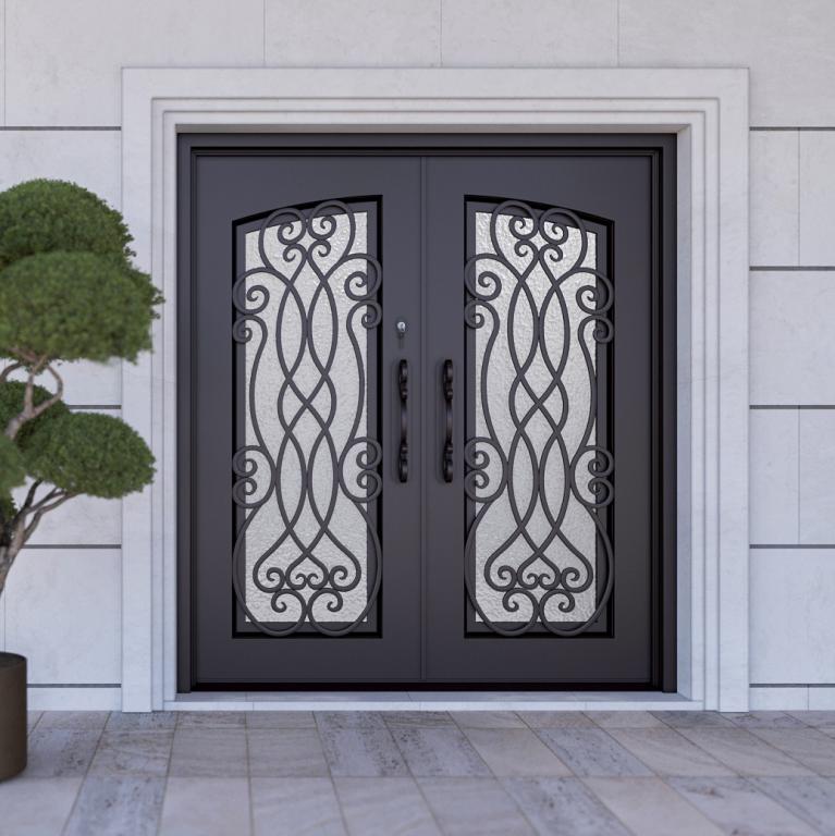 | CARMEN LH WROUGHT IRON Style 72 X 81 LEFT HAND INSWING DARK COPPER Color WATERCUBIC Glass STEEL Material PULL HANDLE #012 SQUARE DEADBOLT 8469 - SINGLE CYLINDER (OIL RUBBED BRONZE (US10B)) DOUBLE SQUARE TOP Mediterranean, Spanish, Italianate Style (Pull Handles and Locks are price separately) | |