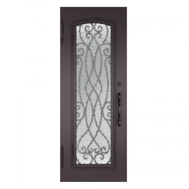 | CARMEN RH WROUGHT IRON Style 37 X 96 RIGHT HAND INSWING DARK COPPER Color WATERCUBIC Glass STEEL Material PULL HANDLE #012 SQUARE DEADBOLT 8469 - SINGLE CYLINDER (OIL RUBBED BRONZE (US10B)) SINGLE SQUARE TOP Mediterranean, Spanish, Italianate Style (Pull Handles and Locks are price separately) | |