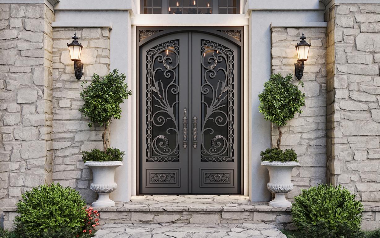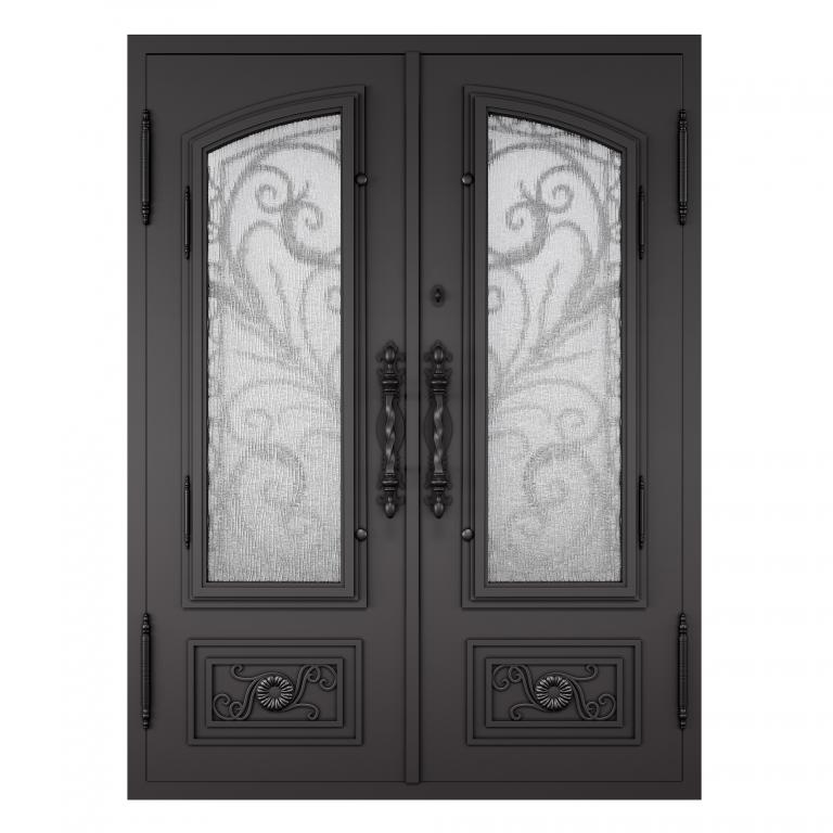 | RENAISSANCE LH WROUGHT IRON Style 61 X 81 LEFT HAND INSWING DARK COPPER Color RAIN Glass STEEL Material PULL HANDLE #019 VITO - D107 - ORB -S - DOUBLE SQUARE TOP Mediterranean, Spanish, Italianate Style wScreen (Pull Handles and Locks are price separately) | |
