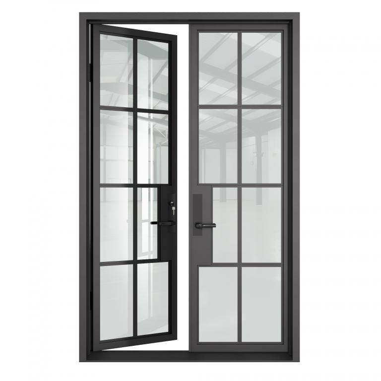| PEACE 8 LITE DOUBLE STEEL DOOR (LH) FRENCH Style 61 X 96 LEFT HAND INSWING FLAT BLACK Color CLEAR Glass STEEL Material TANGO - 305A10 - BL - ET - ACTIVE DOUBLE SQUARE TOP Modern, Contemporary Style (Pull Handles and Locks are price separately) | |