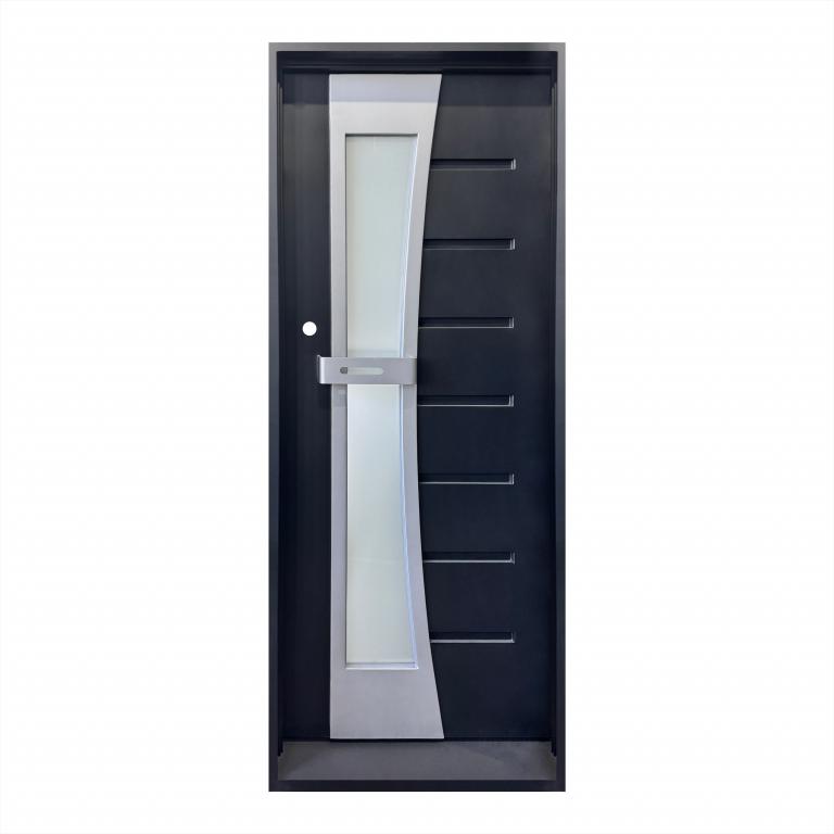 | CUSTOM #1021 WROUGHT IRON Style 32 X 80 SANDBLAST + CLEAR Glass VITO - D107 - BL - S - SQUARE TOP thermalBreak (Pull Handles and Locks are price separately) | |