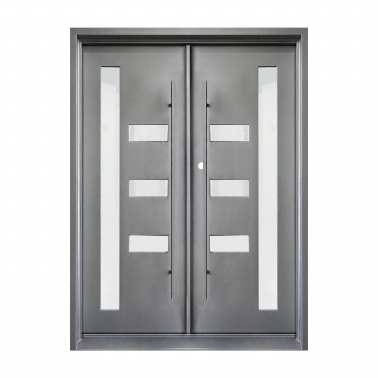 | CUSTOM #916 WROUGHT IRON Style 73 X 86 SANDBLAST + CLEAR Glass VITO - D107 - BL - S - DOUBLE (Pull Handles and Locks are price separately) | |