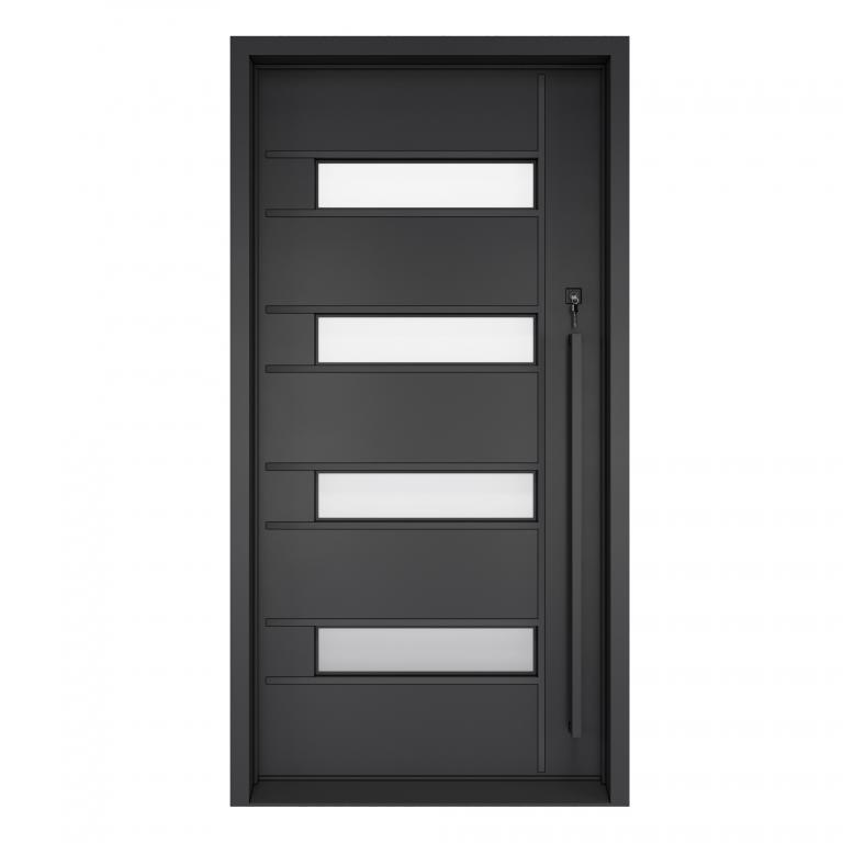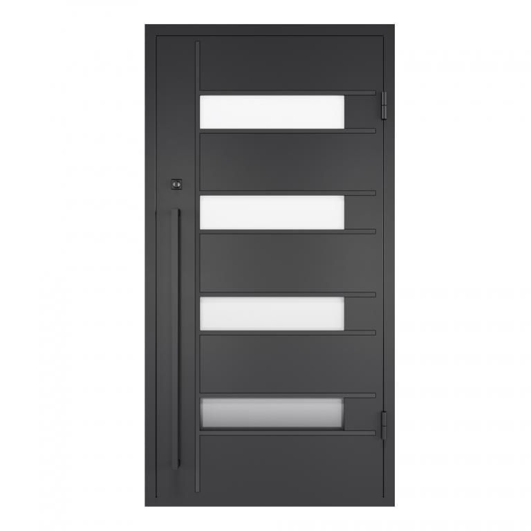 | MILLIONAIRE LH WROUGHT IRON Style 42 X 81 LEFT HAND INSWING FLAT BLACK Color SANDBLAST Glass STEEL Material PULL HANDLE #006 VITO - D107 - BL - S - SINGLE SQUARE TOP Modern, Contemporary Style (Pull Handles and Locks are price separately) | |