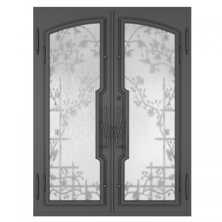 | ORCHID LH WROUGHT IRON Style 72 X 96 LEFT HAND INSWING FLAT BLACK Color RAIN Glass STEEL Material PULL HANDLE #069 VITO - D107 - BL - S - DOUBLE SQUARE TOP Art Deco, Mediterranean, Spanish, Italianate Style wScreen (Pull Handles and Locks are price separately) | |