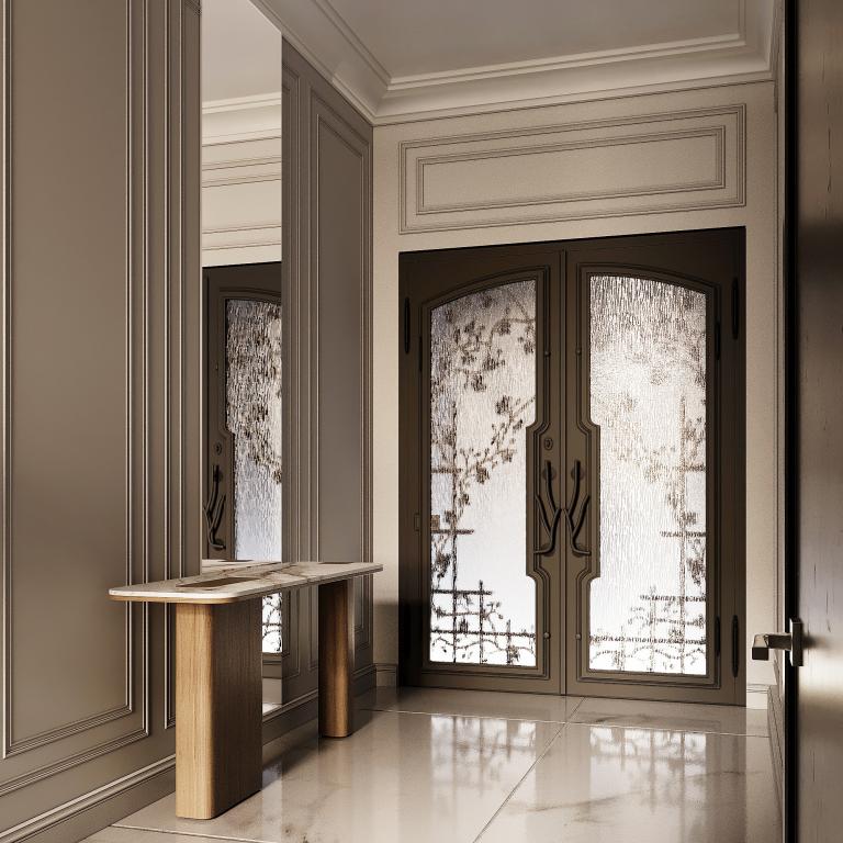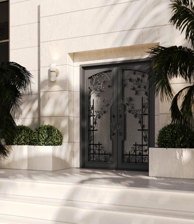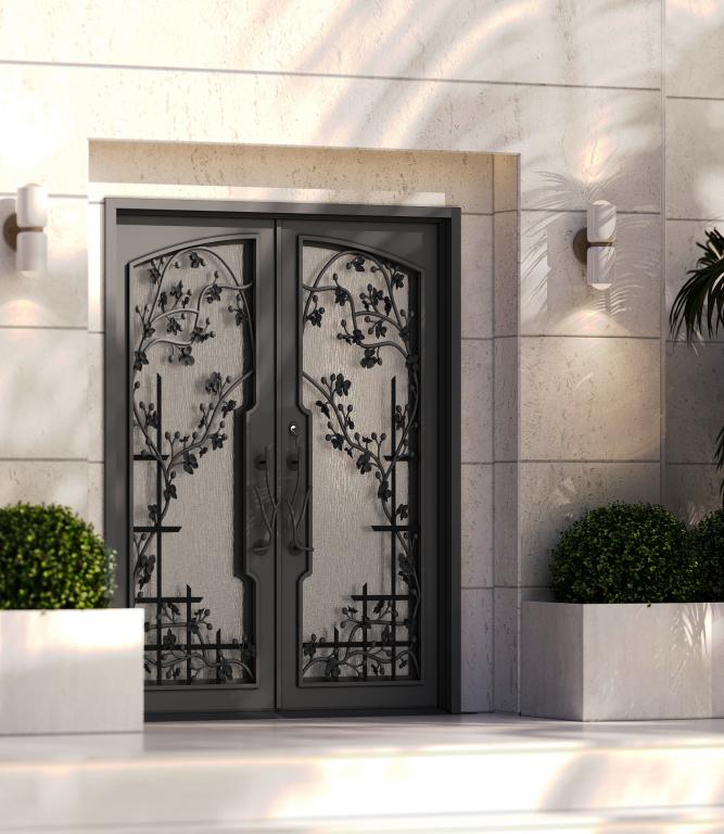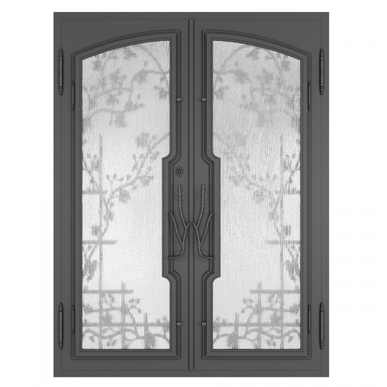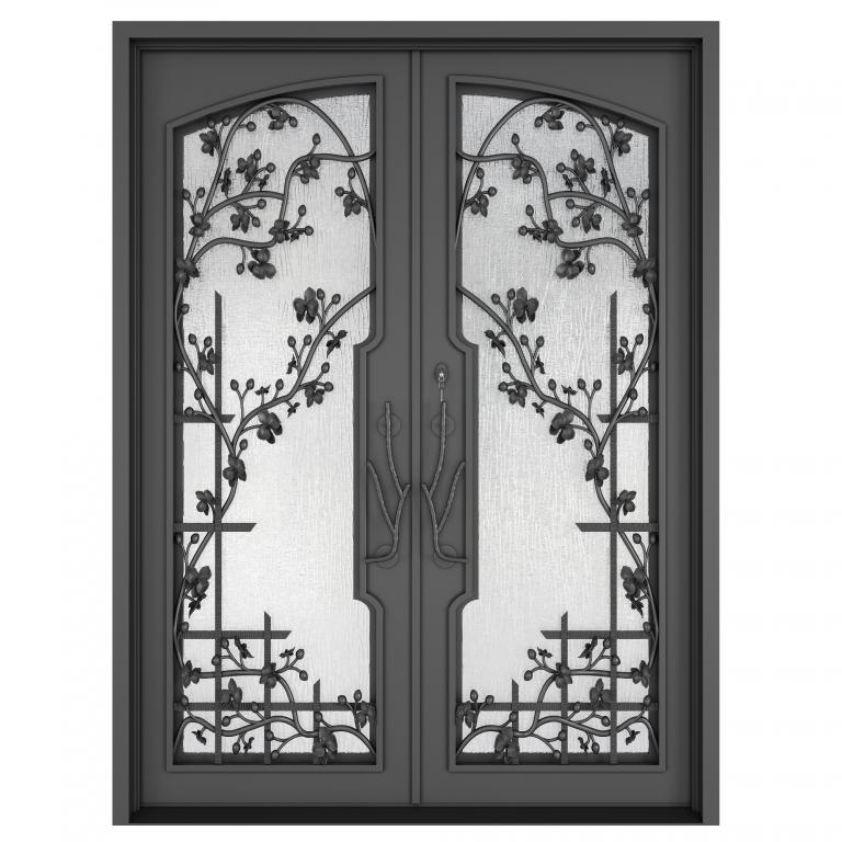 | ORCHID THERMAL BREAK RH WROUGHT IRON Style 72 X 96 RIGHT HAND INSWING FLAT BLACK Color RAIN Glass STEEL Material PULL HANDLE #069 VITO - D107 - BL - S - DOUBLE SQUARE TOP Art Deco, Mediterranean, Spanish, Italianate Style wScreen, Thermal Break (Pull Handles and Locks are price separately) | |