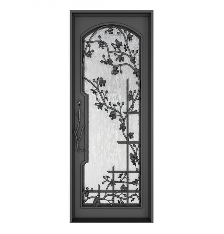 | ORCHID RH WROUGHT IRON Style 37 X 96 RIGHT HAND INSWING FLAT BLACK Color RAIN Glass STEEL Material PULL HANDLE #069 VITO - D107 - BL - S - SINGLE SQUARE TOP Art Deco, Mediterranean, Spanish, Italianate Style wScreen (Pull Handles and Locks are price separately) | |